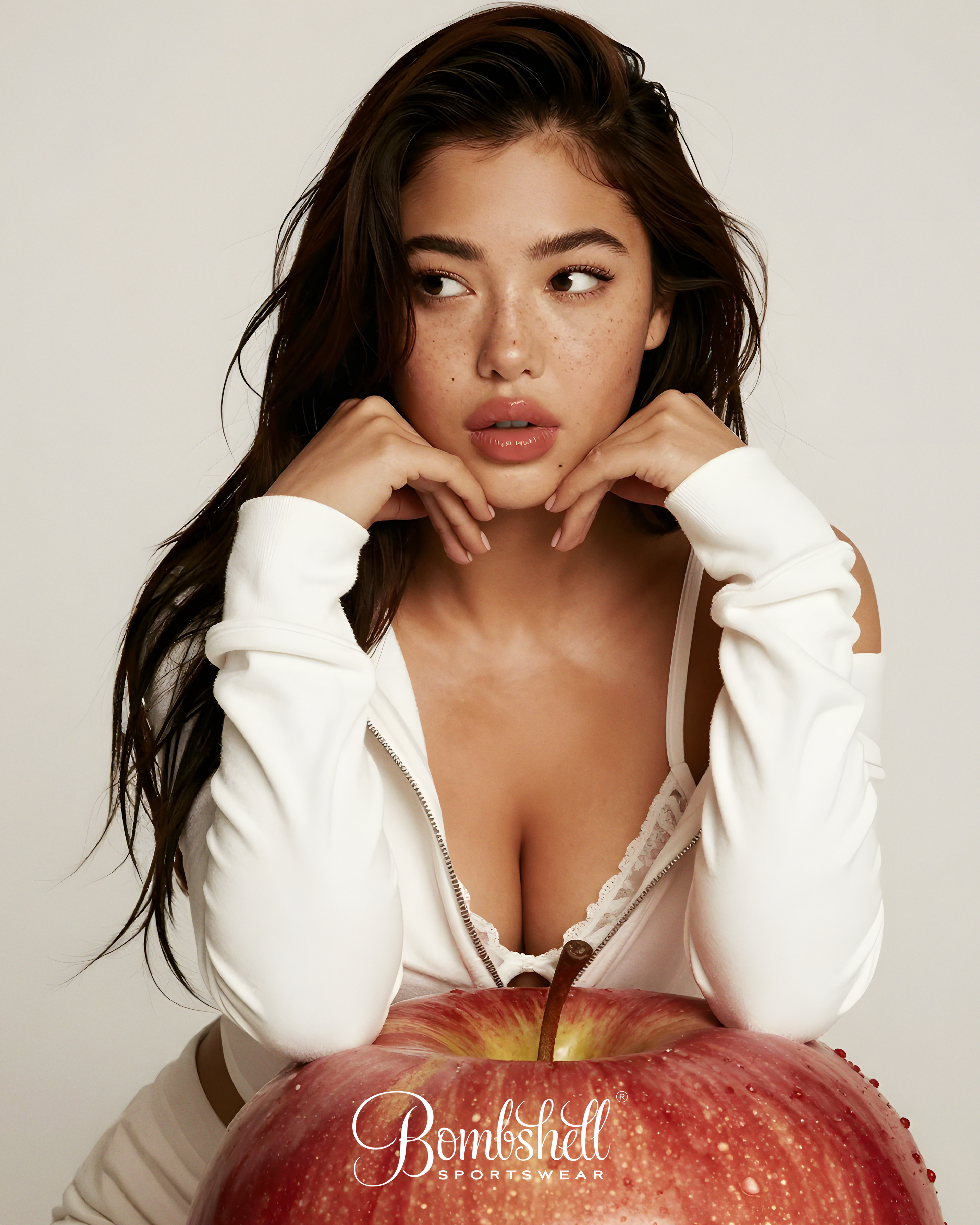 self-initiated project: Bombshell Sportswear champions bold, body-positive activewear that fuses fitness with fearless femininity. This fictional "The Big Apple" campaign evokes health as a dreamy temptation, where the oversized red apple whispers juicy vitality and ethereal nourishment. The AI-generated image conjures the soft allure of indulgent wellness through luminous textures and crisp symbolism—infusing strength, sensuality, and effortless empowerment