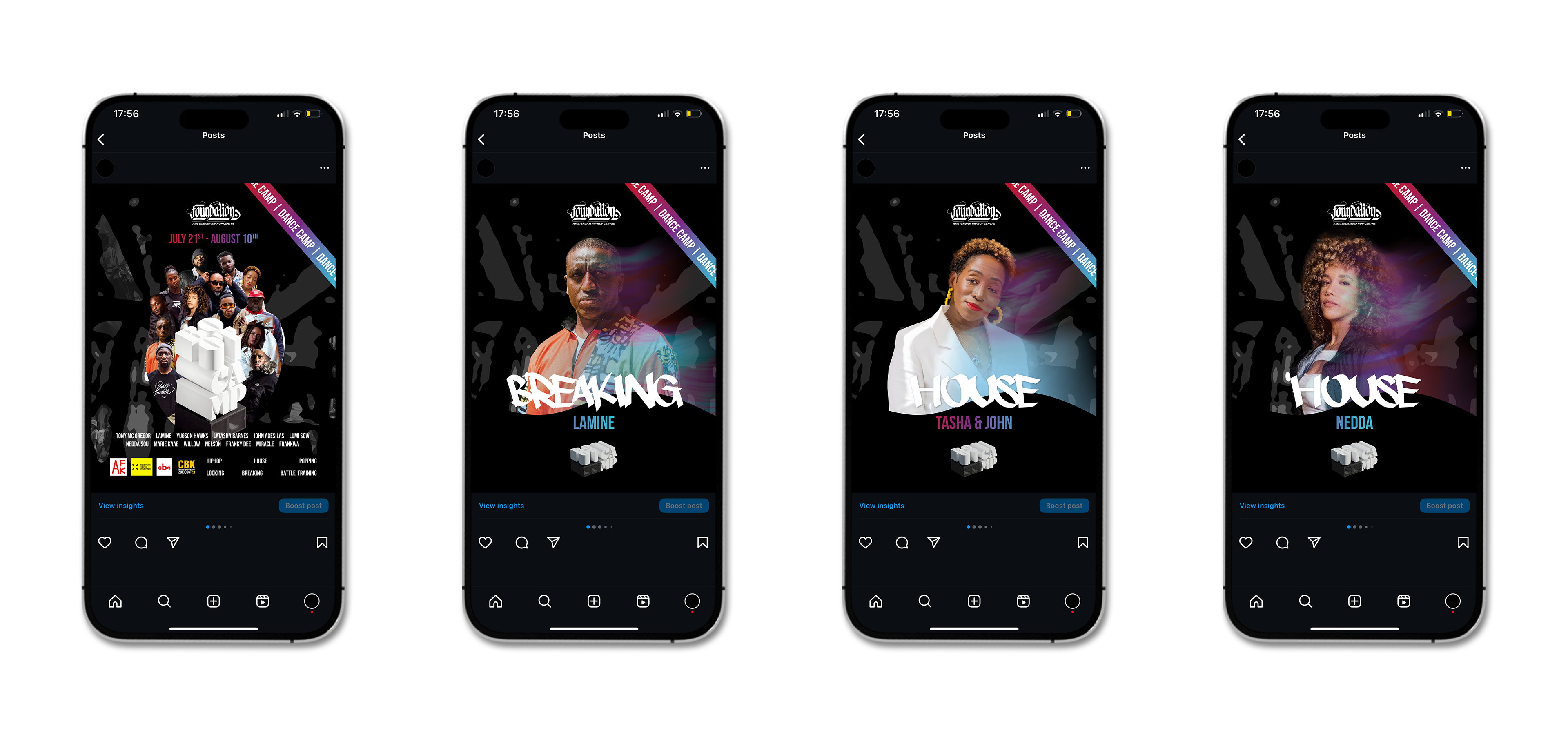For the 2025 edition of the Foundation Dance Bootcamp, I developed the visual identity and social media campaign. This three-week event in Amsterdam is all about dance, culture, and connection — and I wanted the visuals to reflect that energy and depth.